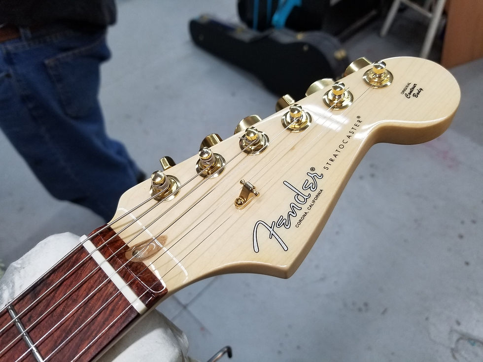 Fender Stratocaster tremolo blocklaysguitarshop2025Dec 20, 20181 min readThis beautiful Fender Stratocaster was in to the shop for a simple blocking of the tremolo. This guitar was just too pretty to not snap a few photos of.